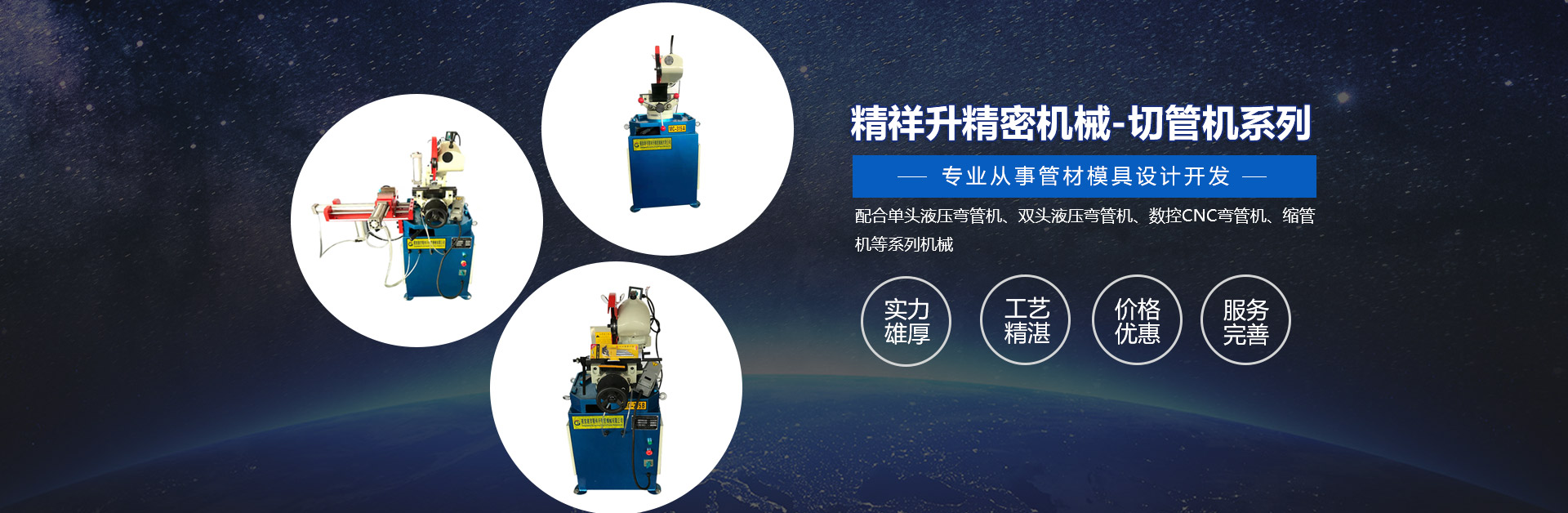 江蘇精祥升機(jī)械有限公司是江蘇張家港市一家專業(yè)從事管材模具設(shè)計(jì)開發(fā)公司位于張家港市樂余鎮(zhèn)。專業(yè)針對汽車、摩托車、自行車、鋼制家具、空調(diào)業(yè)、船迫制造、衛(wèi)浴設(shè)備、管類加工等工礦行業(yè)的鐵管,銅管,鋁管,不銹鋼等多種不規(guī)則型材彎曲、縮管、擴(kuò)管、墩筋、切割、鉚接等管材成型模具制造。配合單頭液壓彎管機(jī)、雙頭液壓彎管機(jī)、數(shù)控CNC彎管機(jī)、縮管機(jī)等系列機(jī)械。